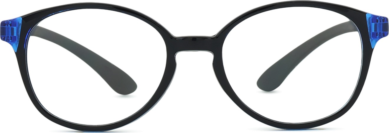 - Culoarea albastră a ramei se potrivește perfect cu un ton de piele rece și cu părul șaten deschis, negru sau blond deschis.