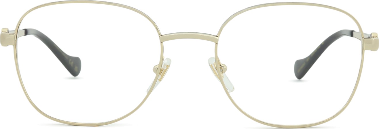 • Culoarea aurie a ramei se potrivește perfect cu un ton cald al pielii și cu părul șaten închis.