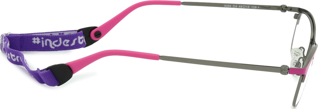 Modelul Indii Kids IN are o bandă textilă reglabilă, care ajută la eliminarea riscului de a pierde ochelarii și asigură o fixare mai bună pe cap în timpul diferitelor activități ale copiilor.