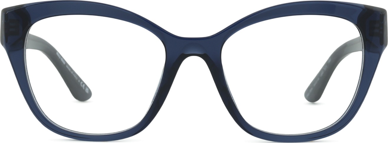 - Culoarea albastră a ramei se potrivește perfect cu un ton de piele rece și cu părul șaten deschis, negru sau blond deschis.