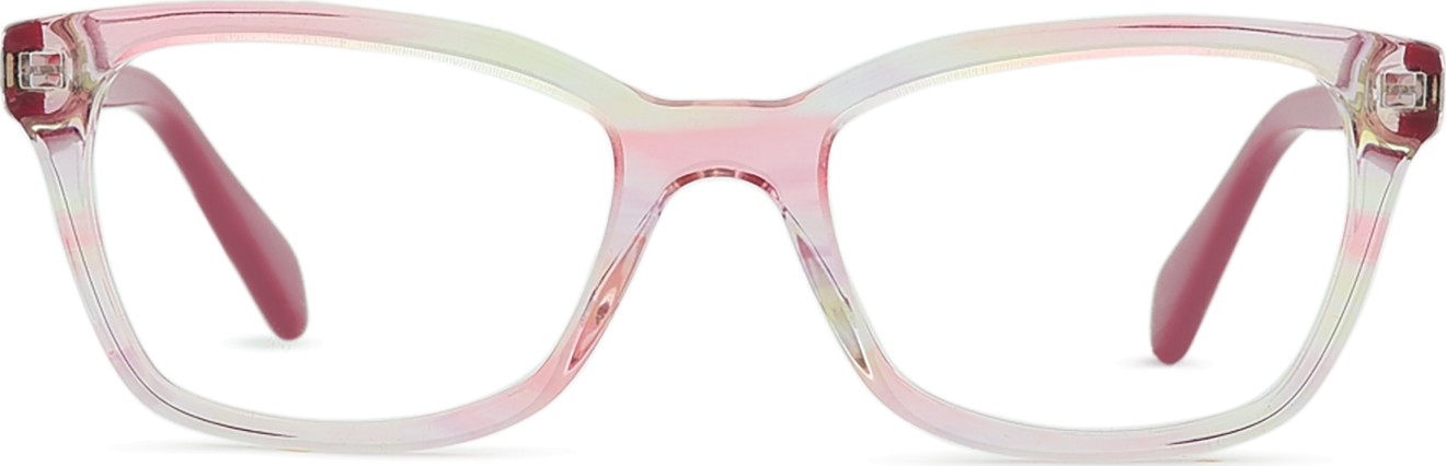 - Culoarea roz a ramei se potrivește perfect cu un ton de piele rece și cu părul șaten deschis sau blond deschis.
