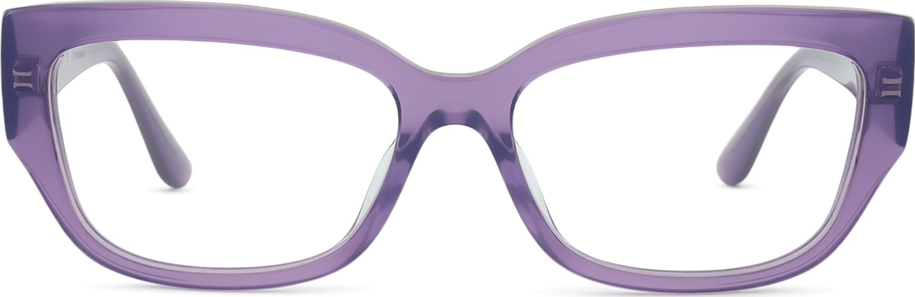 • Culoarea mov a ramei se potrivește perfect cu un ton de piele rece și cu părul negru, gri, alb sau blond deschis.